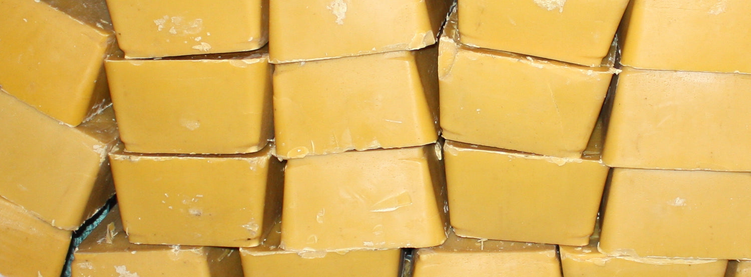 In its raw state, the hive’s wax honey comb (not the cappings) contains leftover honey, honey comb, bee parts, pollen and propolis throughout the hive. Beeswax in this state is used for many different crafts and purposes. Some types of raw candles are made with this wax; also, wood, metal and leather workers will often use this less expensive raw wax.