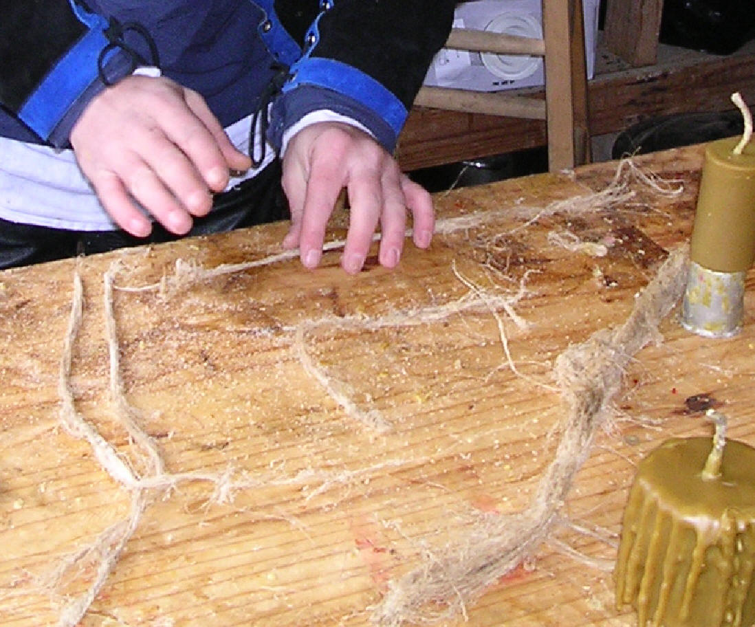 Our wicking is made from fiber and combinations of hemp and mullein tightly twisted into strands, twine, cord, & rope, then cooked in hot beeswax for several days at high temperatures. Because our wicking burns many times longer than the wax in a standard pillar candle, you can feed additional raw beeswax to your candle to extend the life. This is the same principle as adding fuel to the lantern.